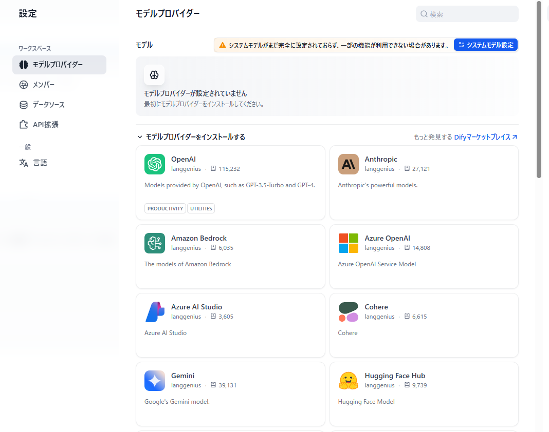 まず、各種LLMの呼び出しですが、各種モデルプロバイダを呼び出すモジュールがあらかじめ用意されているので、 これらを選んで導入、APIキーなどを設定するだけでLLMモデルを実行することができます。